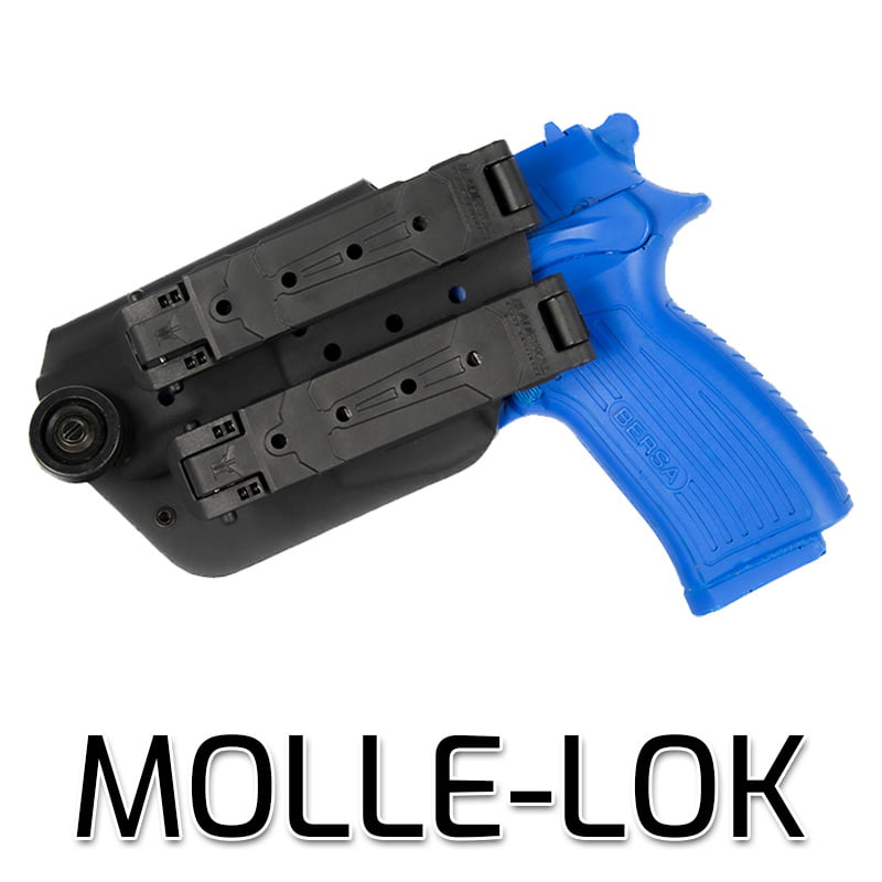 Toda la funcionalidad de nuestra funda DELTA sumada a un corte que permite mayor velocidad de desenfunde.