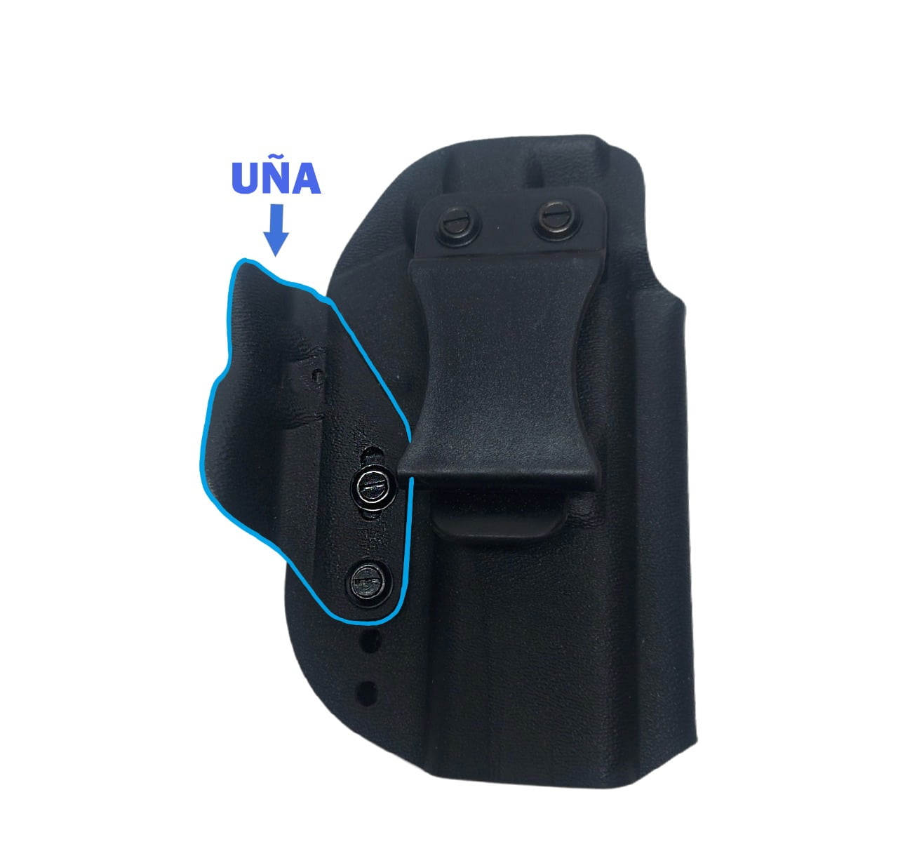 Este accesorio permite que la empuñadura del arma quede más cerca del cuerpo evitando que la misma se marque en la ropa durante la portación oculta.